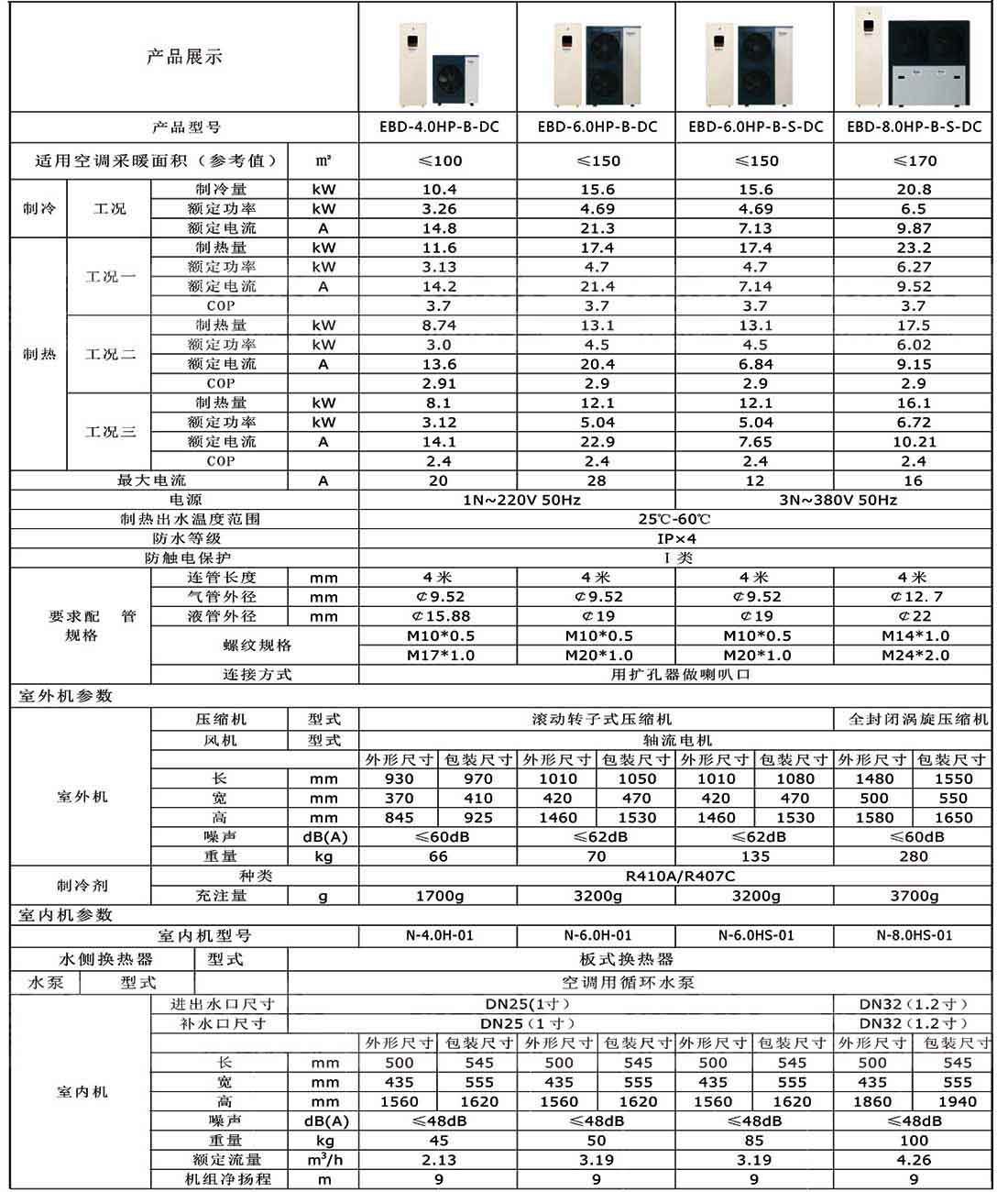(1)制冷:DB35℃/WB24℃,進水溫度12℃,出水溫度7℃; |